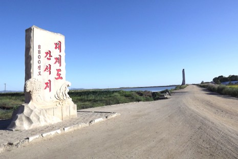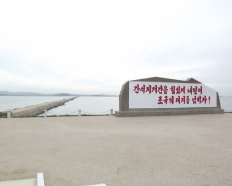 Viele Marschländer am Koreanischen Westmeer wie die Marschländer Taegyedo und Kwaksan wurden durch die starken Dämme in die fruchtbaren Böden des Landes verwandelt. Dank des patriotischen Willens der Marschlandbauer, das Territorium des Landes zu vergrößern, kommen auch heute am Marschland um die Insel Honggon die langen Dämme zur Welt, die ewig unerschütterlich bleiben werden. Es ist ihr fester Wille, für das glückliche Leben des Volkes alle Marschländer am Koreanischen Westmeer fruchtbar zu machen.