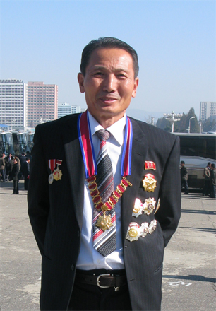 Er ist Dr. Yun Myong, Abteilungsleiter im Steuermaschineninstitut bei der Staatlichen Akademie der Wissenschaften. Einige Forscher, darunter auch Yun Myong, stellten die mit CNC-Technik ausgestattete Maschine für Bearbeitung des Wasserturbineflügels her. Yun Myong fasste den Entschluss zur Produktion dieser Maschine, nachdem Genosse Kim Jong Il einen Hinweis auf die Modernisierung der Stromerzeugungsmaschinen gegeben hatte. Mehr als 20 Forscher des Instituts kamen vor Ort. Sie wiederholten die Untersuchung vieler technischer Dokumente und die technische Beratung vor Ort. Dabei schufen sie ein digitales Hightech-Steuerungssystem, entwickelten Arbeitssystem und Steuerungsprogramm und statteten damit die Werkzeugmaschinen mit CNC-Technik aus.