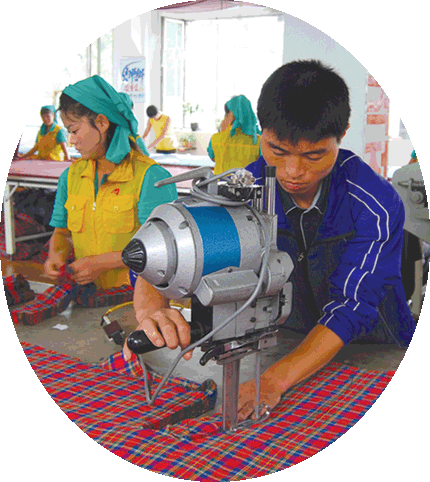 Diese Fabrik produziert jährlich hunderttausende Konfektionen und ist vom Schneiden über Verarbeitung bis Anfertigung mit leistungsfähigen Konfektionsverarbeitungsanlagen versehen. Sie verfügt auch über eine zuverlässige materiell-technische Grundlage, auf der man verschiedenartige Konfektionen, darunter Kinderbekleidungen, Windjacken, Hosen und Wattejacken, herstellen kann.