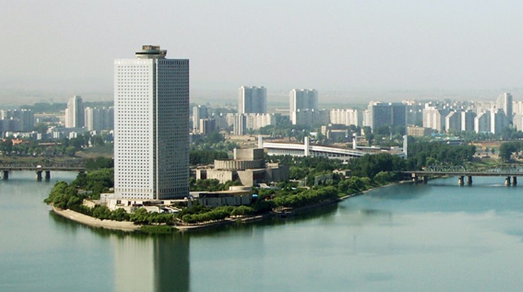 Das Internationale Hotel Yanggakdo befindet sich auf der Insel Yanggak mitten im Fluss Taedong in Pyongyang.