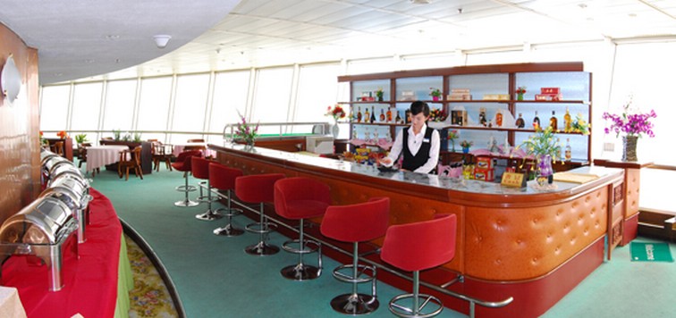 Im obersten Stock des Hotels gibt es ein Drehrestaurant, wo man beim Essen und Bankett die schöne Landschaft von Pyongyang anblicken kann.